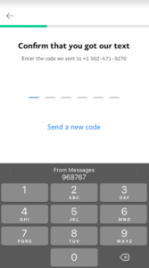 - You should now receive a text to confirm your phone number. You will need to enter the code received in the text on this screen.