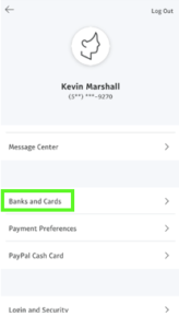 - Once on the Settings screen, click on the link ‘Banks and Cards’